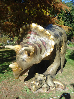 Het museum heeft ook een uitgebreid buitenterrein met botanische tuin, een stuk bos en een hele hoop dinomodellen. En hier ben ik echt in mijn element, want wat is er leuker dan lekker muggenziften op dinomodellen?